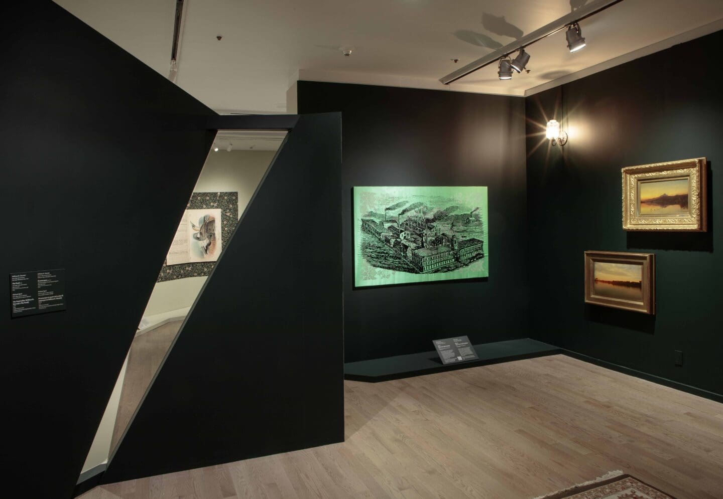 Some of the inspirational artworks from the NMOA collection include American landscapes, Chinese scroll paintings, and the period rooms in The Ballantine House. The artist has created new artworks for the exhibition that will be presented alongside her previous installations and NMOA collection objects in the Global Contemporary galleries as well as in the landscape gallery in Seeing America. Syed has produced art in a variety of mediums, including videos, embroidered silk panels, installations with paintings and objects, and printed textiles.