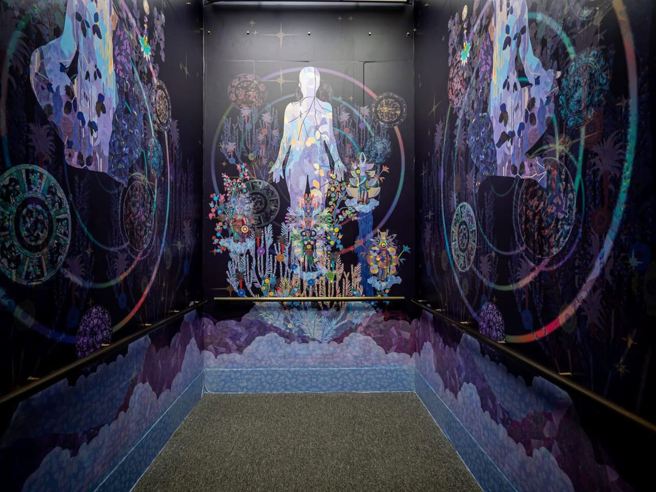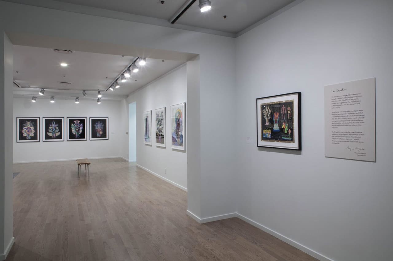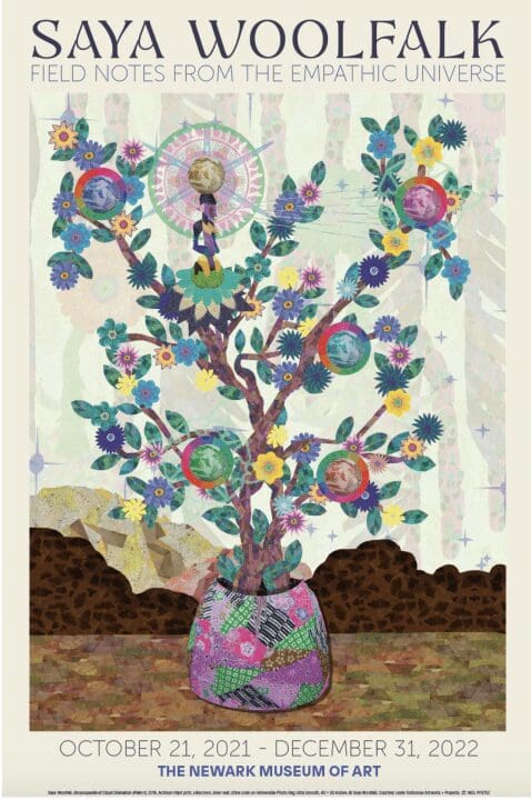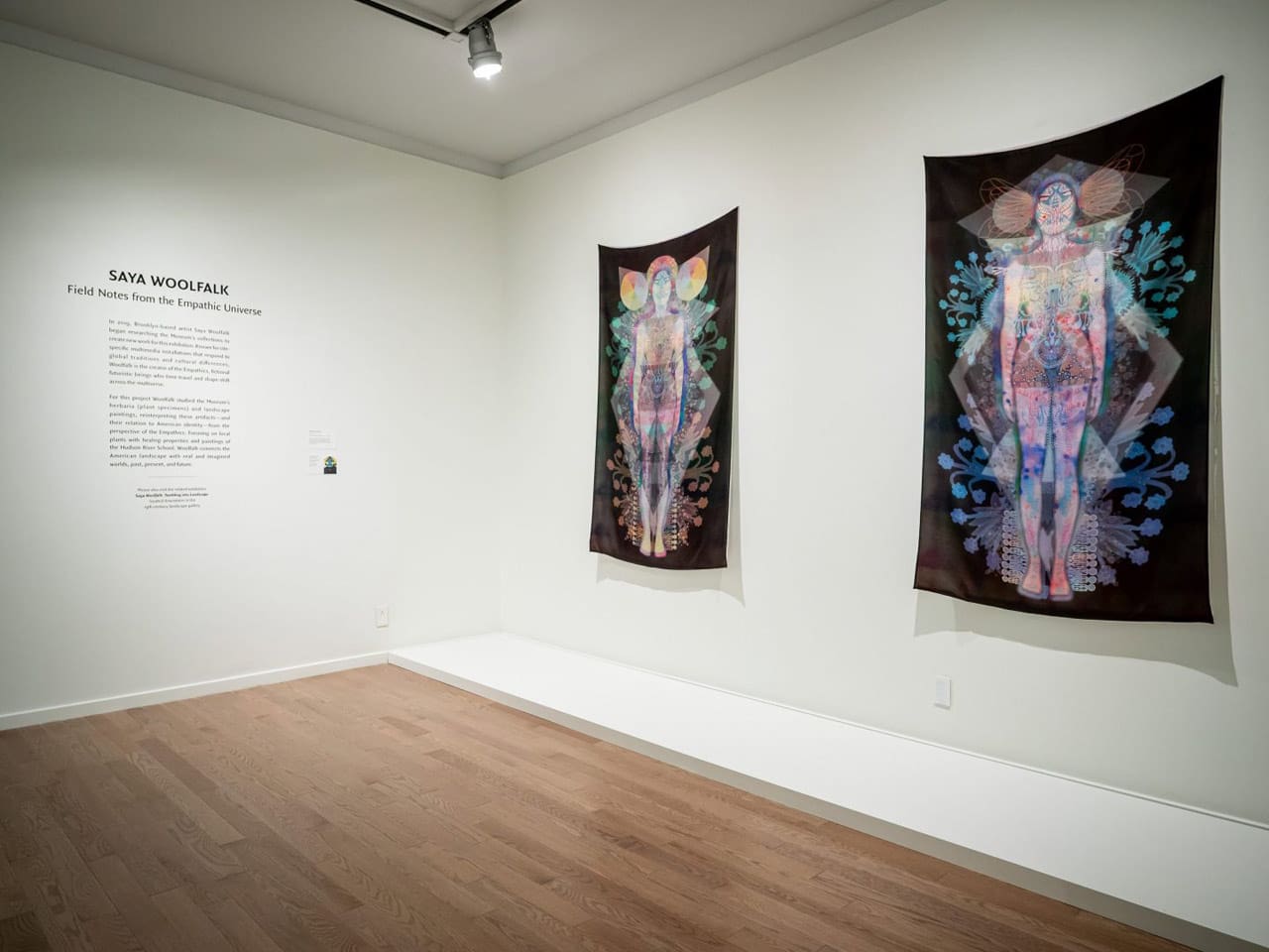 The exhibition features an immersive video installation exploring portraiture and a series of new mixed media collages, all accessed through the North Wing elevator, transformed by Woolfalk’s digitally-collaged murals. Known for her site-specific multimedia works that investigate global traditions and cultural difference, Woolfalk is the creator of the Empathics—fictional futuristic beings who time-travel and shape-shift across the multiverse. For this exhibition Woolfalk studied the Museum’s herbaria (plant specimens) and landscape painting collections, reinterpreting these artifacts—and their relation to American identity—from the perspective of the Empathics.